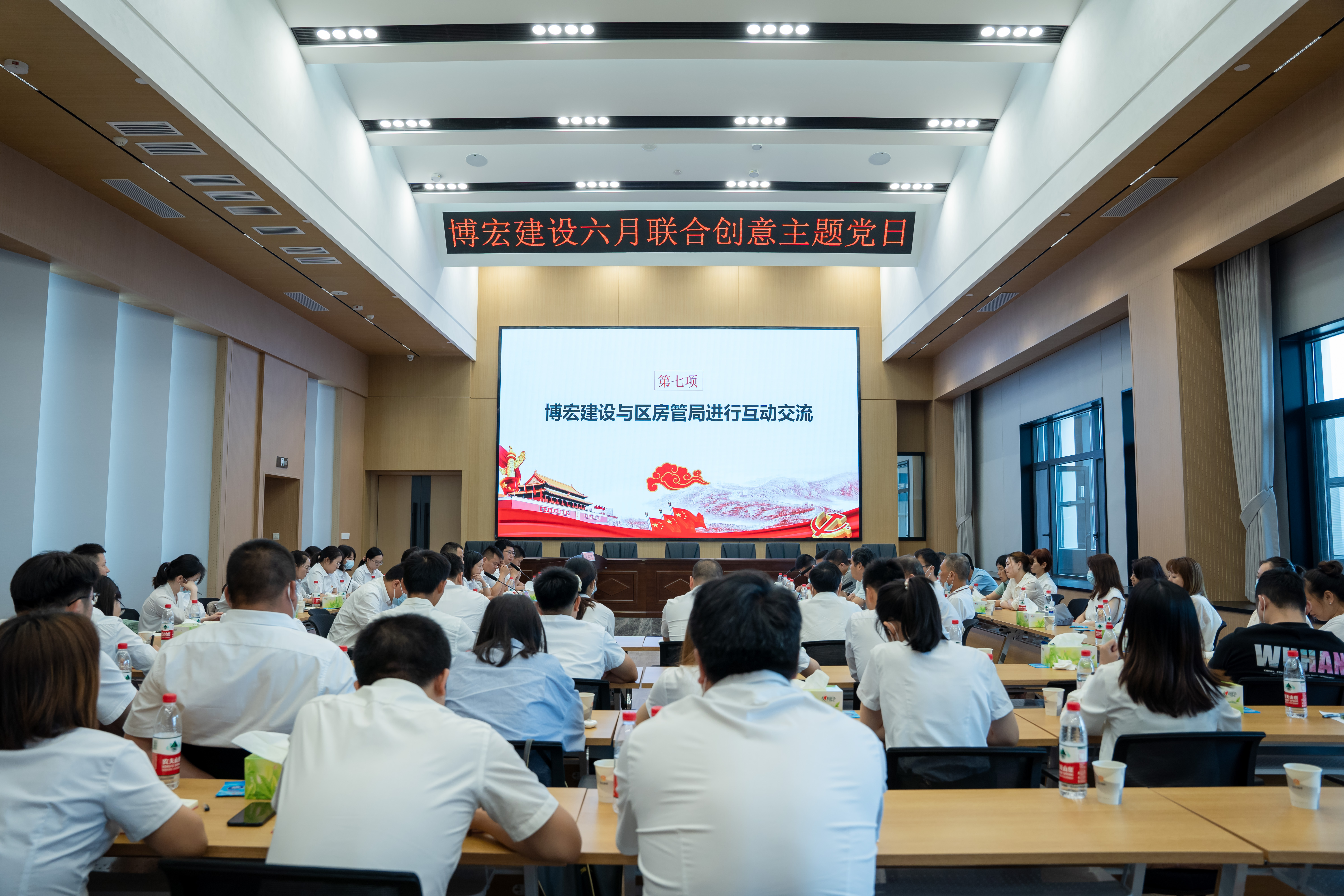 奮斗創(chuàng)造歷史,實(shí)干鑄就未來。6月9日上午,博宏建設(shè)集團(tuán)與漢陽區(qū)房管局聯(lián)合開展6月創(chuàng)意支部主題黨日,會議在博宏建設(shè)集團(tuán)31樓會議室舉行。漢陽區(qū)房管局總工程師戴軍,博宏建設(shè)集團(tuán)黨支部書記、董事長、總經(jīng)理鄒勇等黨員代表,共計(jì)60余人參加會議。