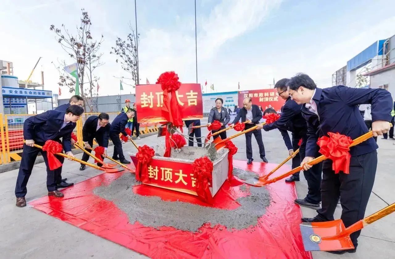 2023年11月8日上午,漢陽市政科研中心封頂儀式在項(xiàng)目現(xiàn)場(chǎng)隆重舉行。漢陽區(qū)國資局黨組書記、局長嚴(yán)俊,漢陽區(qū)建設(shè)局黨組成員、漢陽區(qū)建管站站長王晟,漢陽市政集團(tuán)黨委副書記、副董事長虞志鵬,總工程師荊武及相關(guān)部門負(fù)責(zé)人,兄弟單位主要領(lǐng)導(dǎo),博宏建設(shè)集團(tuán)黨委書記、董事長、總經(jīng)理鄒勇,常務(wù)副總經(jīng)理奚雷等相關(guān)領(lǐng)導(dǎo),以及項(xiàng)目一線建設(shè)者共計(jì)60余人共同見證項(xiàng)目封頂。