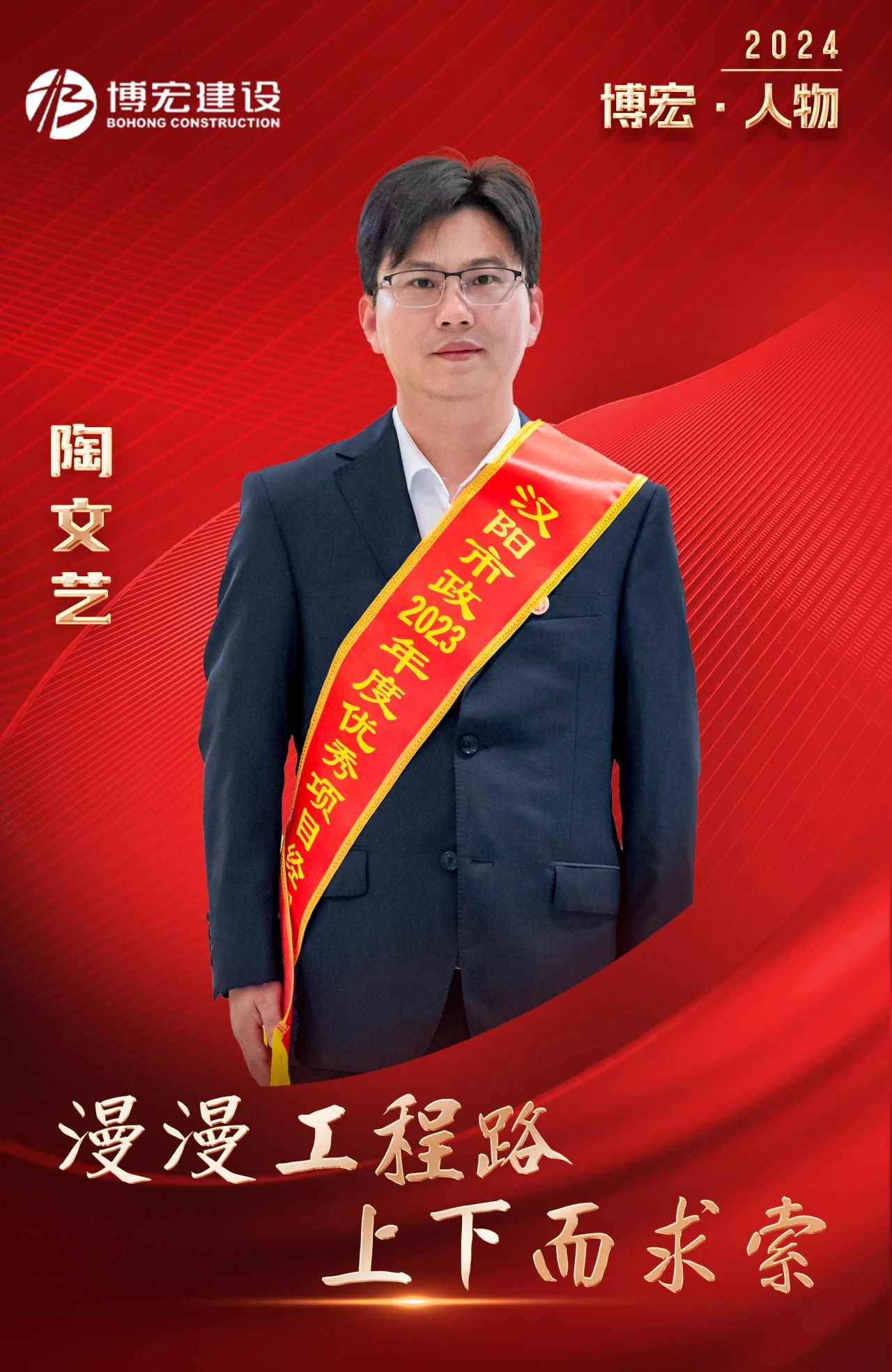 陶文藝,中共黨員,2010年入職漢陽市政博宏建設,現(xiàn)任九項目部項目經(jīng)理。從業(yè)二十載,他先后參建了米糧山立交、鸚鵡洲長江大橋漢陽接線工程、芳草小學、墨水湖公園、黃石正信花園、黃梅菩提小鎮(zhèn)、襄陽清河城、荊門龍山中央商務區(qū)、宜昌天創(chuàng)覽江府等多個項目,一座座精品工程見證了他的奮斗和成長,也見證了他在勇敢跨越中屢攀高峰。曾獲評漢陽市政“優(yōu)秀項目經(jīng)理”“優(yōu)秀員工”“優(yōu)秀專業(yè)技術人員”,博宏建設“優(yōu)秀項目經(jīng)理”“十佳員工”“優(yōu)秀個人”等榮譽稱號。